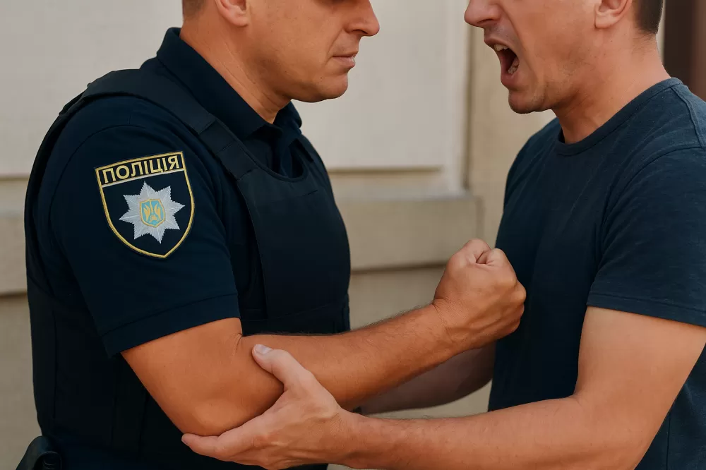 Дії чоловіка кваліфікували за ч. 2 ст. 345 Кримінального кодексу України — «Напад на правоохоронця під час виконання службових обов’язків».