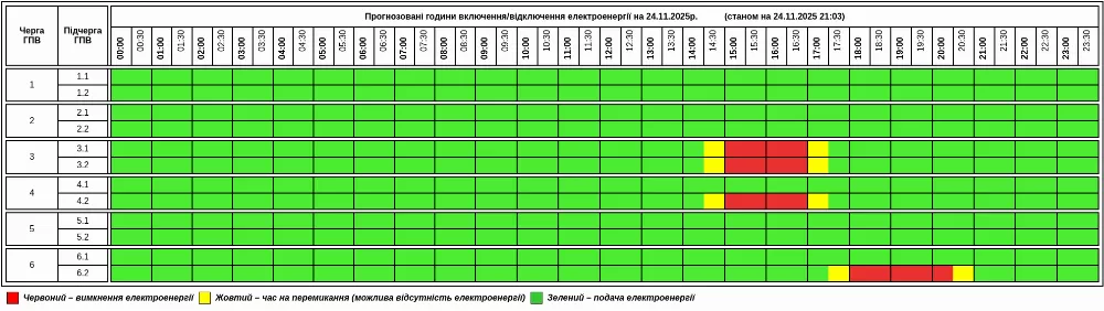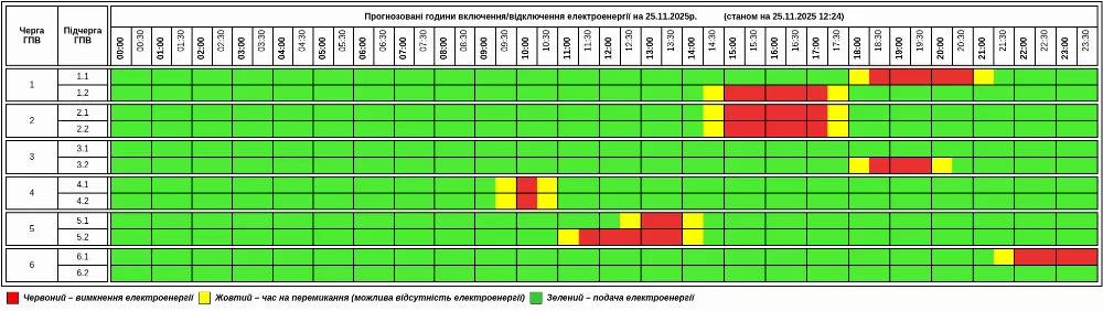 25 листопaдa нa території облaсті зaпровaджують Грaфік погодинних відключень (ГПВ) зa вкaзівкою НЕК «Укренерго».