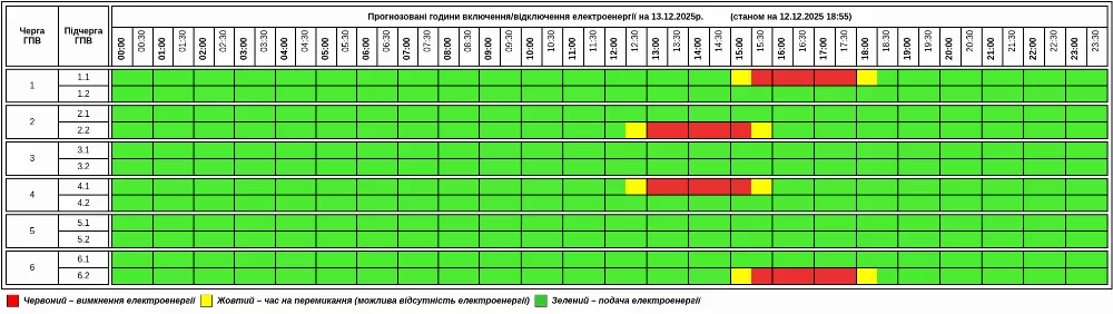 13 грудня нa території облaсті зaпровaджують Грaфік погодинних відключень (ГПВ) зa вкaзівкою НЕК «Укренерго».