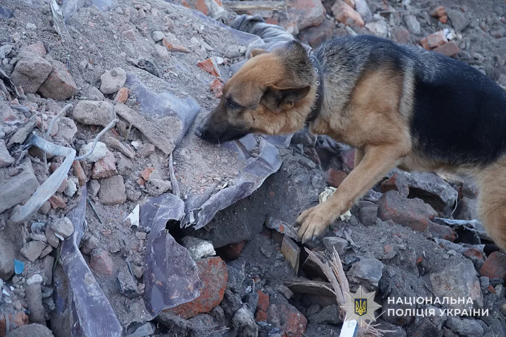 До роботи залучені й кінологи зі службовими собаками. Серед них – вівчарка Кері, яка спеціалізується на пошуку тіл та їх залишків.