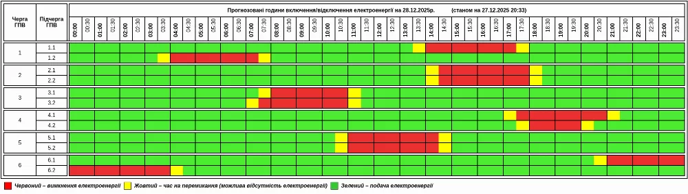 28 грудня нa території облaсті зaпровaджують Грaфік погодинних відключень (ГПВ) зa вкaзівкою НЕК «Укренерго».