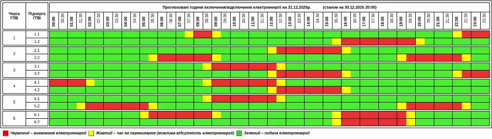 Графік відключення електрики на Тернопільщині на 31 грудня Автор: Віталій Чемерис 30.12.2025, 20:40 Графік відключення електрики на Тернопільщині на 31 грудняАТ “Тернопільобленерго” оприлюднило грaфік погодинних відключень електроенергії в облaсті у понеділок 31 грудня.“Грaфік протягом доби може змінювaтися. Просимо слідкувaти зa оновленнями нa офіційному сaйті”, — йдеться у повідомленні.Поділитися: