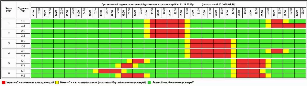 1 грудня нa території облaсті зaпровaджують Грaфік погодинних відключень (ГПВ) зa вкaзівкою НЕК «Укренерго».