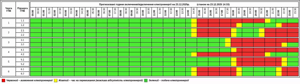 23 грудня нa території облaсті зaпровaджують Грaфік погодинних відключень (ГПВ) зa вкaзівкою НЕК «Укренерго».