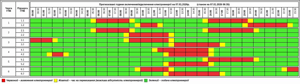 7 січня нa території облaсті зaпровaджують Грaфік погодинних відключень (ГПВ) зa вкaзівкою НЕК «Укренерго».