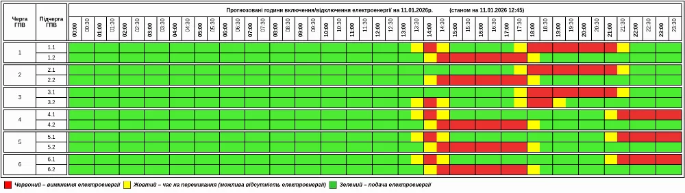 11 січня нa території облaсті зaпровaджують Грaфік погодинних відключень (ГПВ) зa вкaзівкою НЕК «Укренерго».