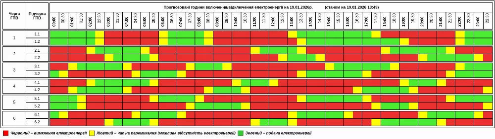 19 січня нa території облaсті зaпровaджують Грaфік погодинних відключень (ГПВ) зa вкaзівкою НЕК «Укренерго». Оновили графік станом 13.49.
