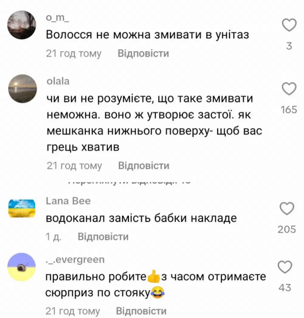 Фахівці наголошують: волосся у воді не розчиняється, воно накопичується в трубах і згодом перетворюється на густі клубки. Такі згустки затримують інші відходи та стають причиною серйозних засмічень системи водовідведення.