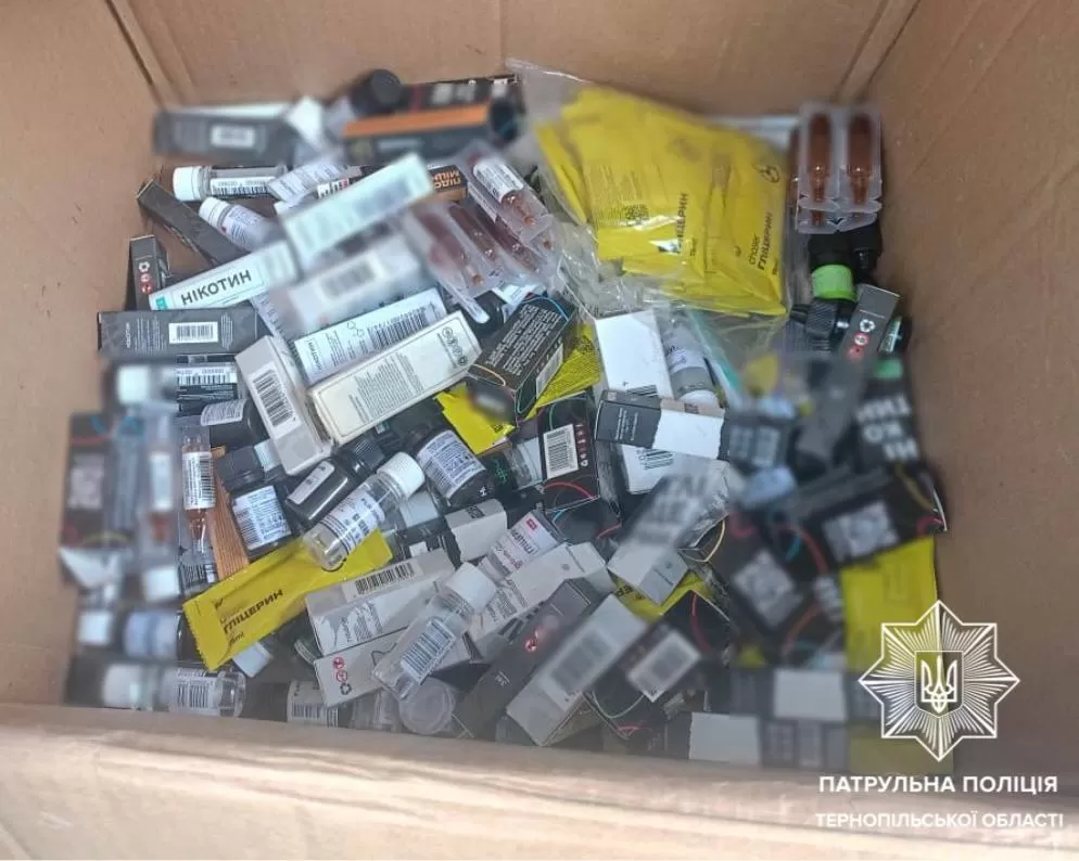 Під час перевірки документів 23-річний водій помітно нервував, тож патрульні провели поверхневу перевірку транспортного засобу та виявили ящик із нікотиновмісними речовинами без марок акцизного податку та дозвільних документів.