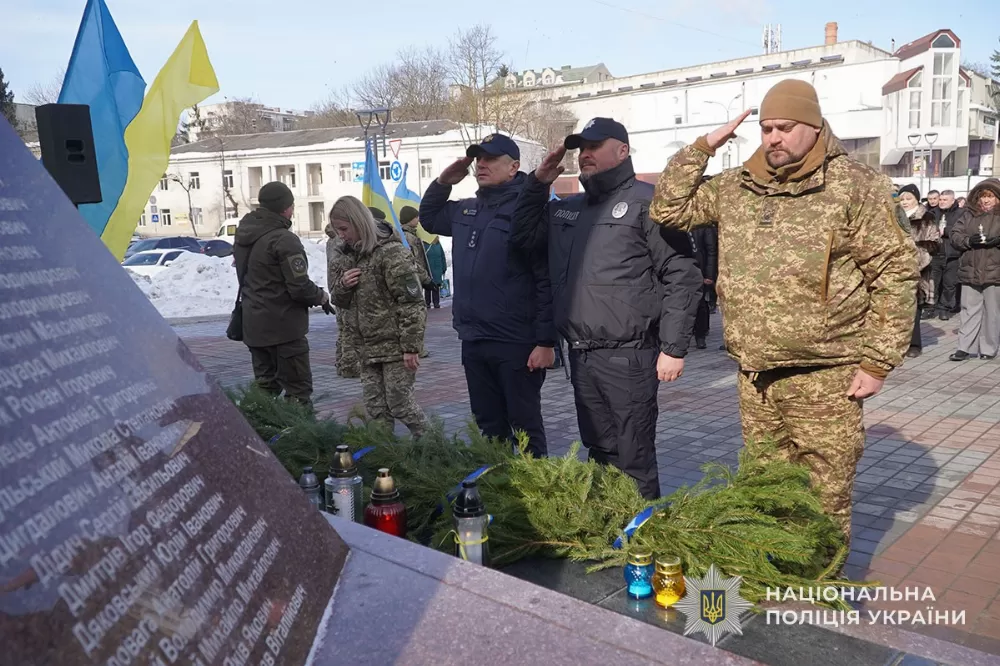 Сьогодні в Тернополі на площі Героїв Євромайдану біля пам’ятного знаку загиблим відбувся захід у якому взяли участь також представники поліції Тернопільшини, повідомляє відділ комунікації поліції Тернопільської області.