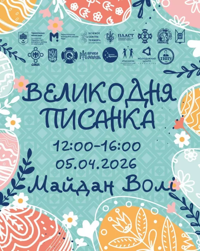 У Тернополі в неділю, 5 квітня, відбудеться майстер-клас з писанкарства «Великодня писанка». Захід пройде з 12:00 до 16:00 на Майдані Волі.